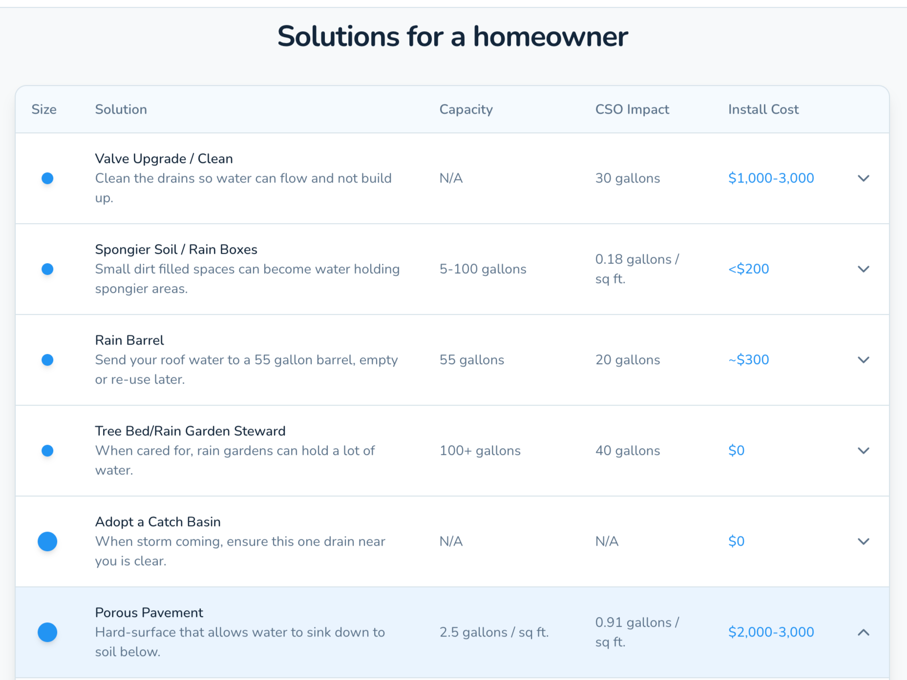 Compare What Works: Evaluate options by cost, stormwater capacity, and neighborhood-scale impact.